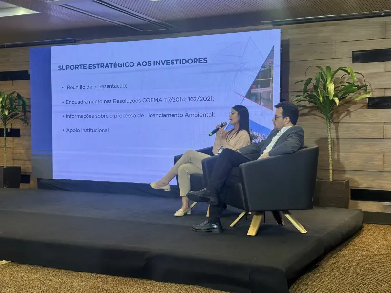 Mediação - Amanda Karolina apresentou a atuação da Companhia na mediação entre o setor produtivo e o governo estadual, com ênfase na orientação a investidores e na articulação institucional voltada ao avanço de projetos sustentáveis.