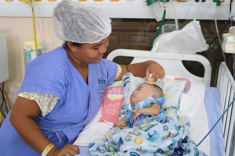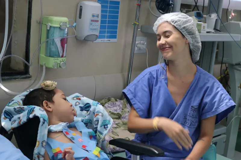 "Embora as crianças estejam aqui, há muito tempo acamadas, isso faz elas se sentirem mais vivas e pra nós, as mães, que também estamos no hospital. Esse momento de arrumá-los, colocar um chapéu ou um lacinho na cabeça, faz muita diferença, que para as pessoas lá fora pode não fazer", afirma Juliana Azevedo, mãe de Adam, de 5 anos.