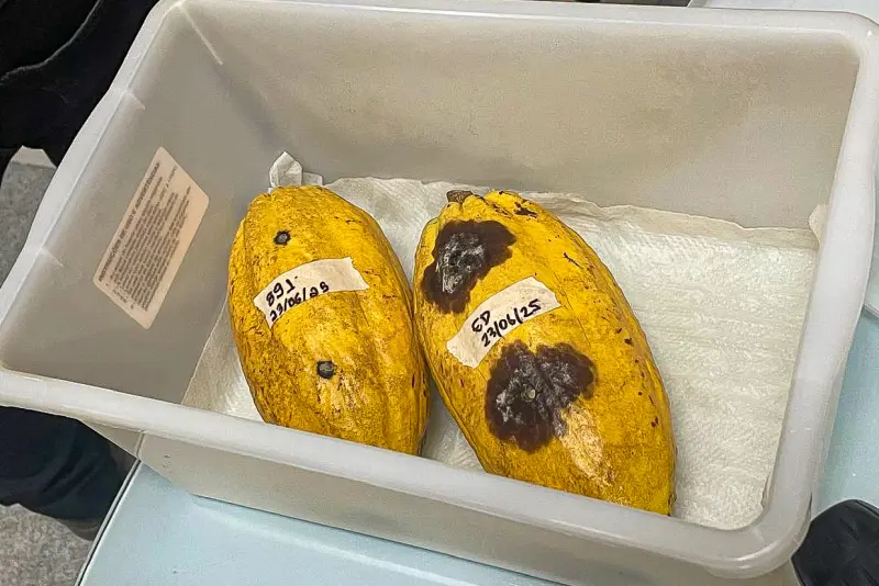 Uma das informações que ela repassa ao público é sobre a "podridão parda", doença fúngica que pode afetar a produção de cacau. "Ele causa um prejuízo e é muito importante estudar sobre ele. Fica muito marrom e estraga completamente o fruto e os grãos do cacaueiro", explicou.