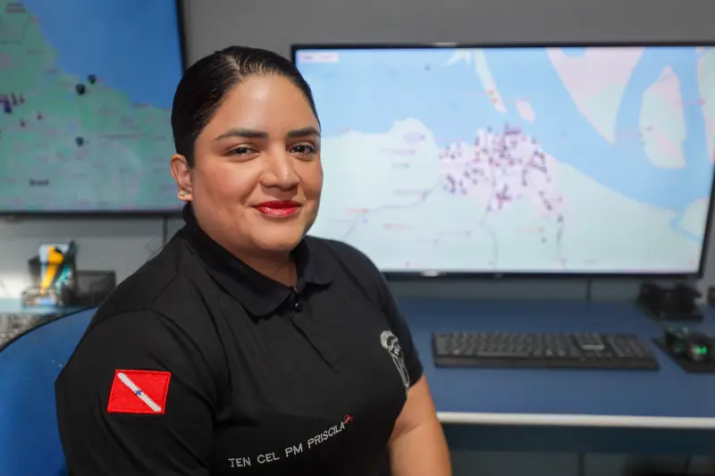 Controle - Diretora do Núcleo da Central de Monitoramento Eletrônico de Santarém, a tenente-coronel Priscila do Nascimento Viana informou que o Núcleo de Santarém é responsável pelos municípios do oeste do Pará que figuram em um mapa, do qual constam todos os monitorados ativos. “Esse monitoramento eletrônico é todo controlado pela central e pelos seus núcleos. Por exemplo, se o monitorado violar alguma das medidas cautelares que são estabelecidas pelo juiz, vai ser informado aqui. Um alerta fica mostrando se houve uma violação diária ou uma violação porque ele não está carregando o dispositivo”, informou a gestora.