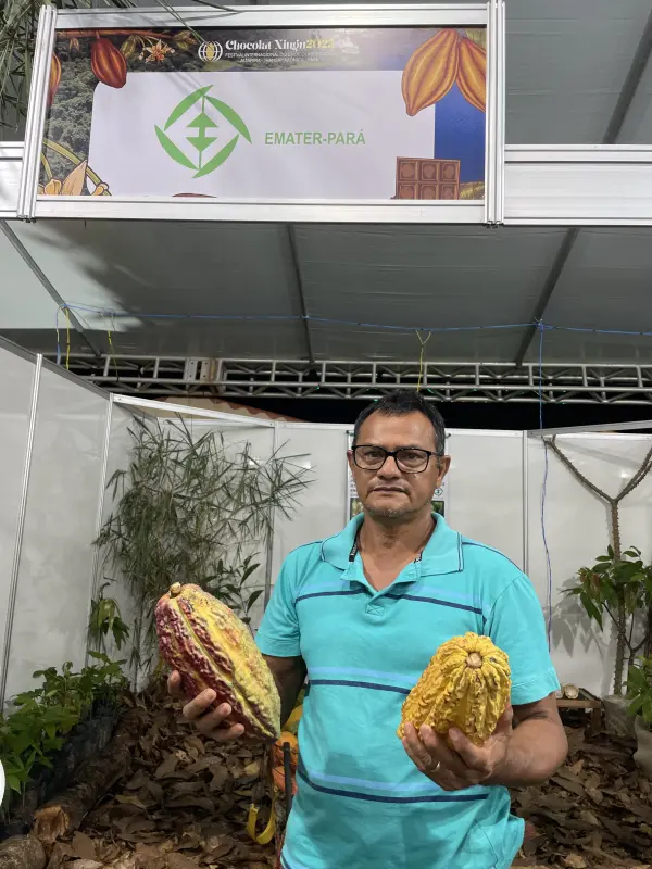 No espaço externo, o estande da Emater reuniu produtores de cacau da agricultura familiar da região do Xingu, atendidos pela empresa pública. Um dos destaques foi o viveirista Paulo Pantoja, do Ramal da Floresta, em Altamira, que destacou a importância do apoio técnico no desenvolvimento da atividade.