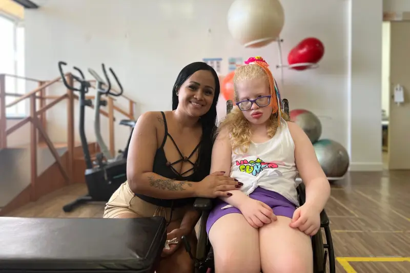 Rotina de proteção - A cuidadora Gabriela Souza, mãe da pequena Ana Gabrielly, de 10 anos, usuária albina atendida no CIIR, relata que a proteção solar faz parte do cotidiano da família. “Ela sempre está de óculos escuros e chapéu, e evitamos sair nos horários de sol forte. Até o banho dela é com água morna, para não irritar a pele”, conta.