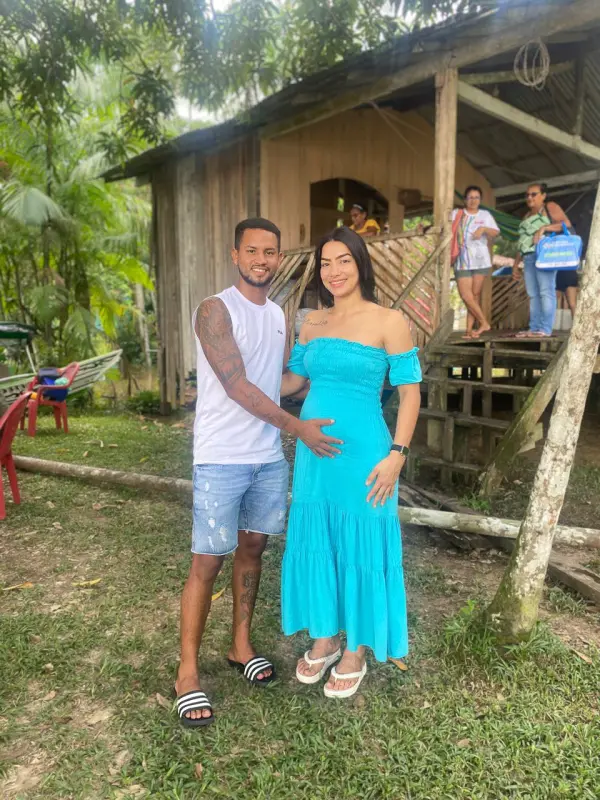 O casal Carla Cristina Farias, de 30 anos, e Ronivaldo dos Anjos, de 23 anos, em união estável há três anos, esperam o primeiro filho. O bebê deve nascer em novembro, e será o mais novo morador do assentamento federal Ilha Grande, pertencente ao território sul de Belém, capital do Pará. “Ainda não descobrimos o sexo e nem cogitamos nomes. O que sabemos é que nascerá e crescerá rodeado de natureza”, suspira a mãe.