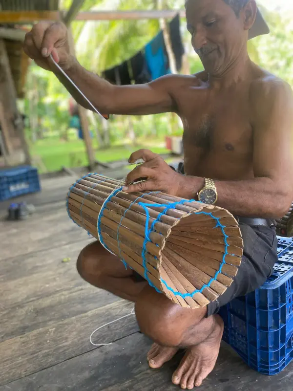 Adelson Reis, de 36 anos, conta do orgulho de labutar de domingo a domingo com o açaí de sua ancestralidade: “É a tradição, uma coisa de raiz, que pra mim é esplendoroso colocar em prática, fazer valer”, relata.