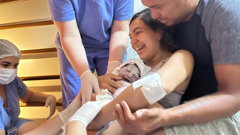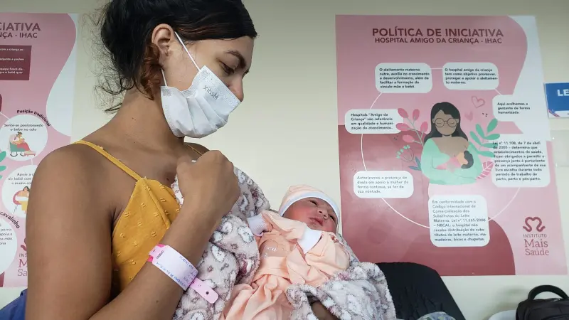 “A minha vivência na primeira gestação foi muito boa, eu não fiquei traumatizada, graças ao acolhimento de uma equipe preparada. Todo o suporte oferecido pelo hospital fez com que eu não sentisse dor antes do nascimento da minha filha, tanto que não senti durante as contrações, somente, claro, durante o parto, que é inevitável”, relembra Letícia Silva.