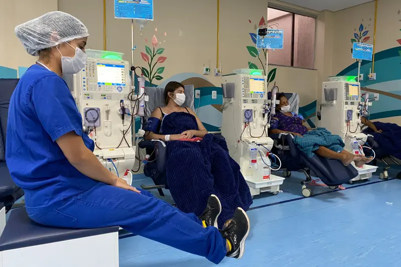 Estrutura e atendimento - Desde sua inauguração, em dezembro de 2024, o Centro de Hemodiálise do HGT já realizou cerca de 2.710 sessões e atualmente atende 45 pacientes ativos. A equipe é formada por 31 profissionais, entre nefrologistas, enfermeiros, técnicos de enfermagem, psicólogo, nutricionista, assistentes sociais e equipe de apoio.