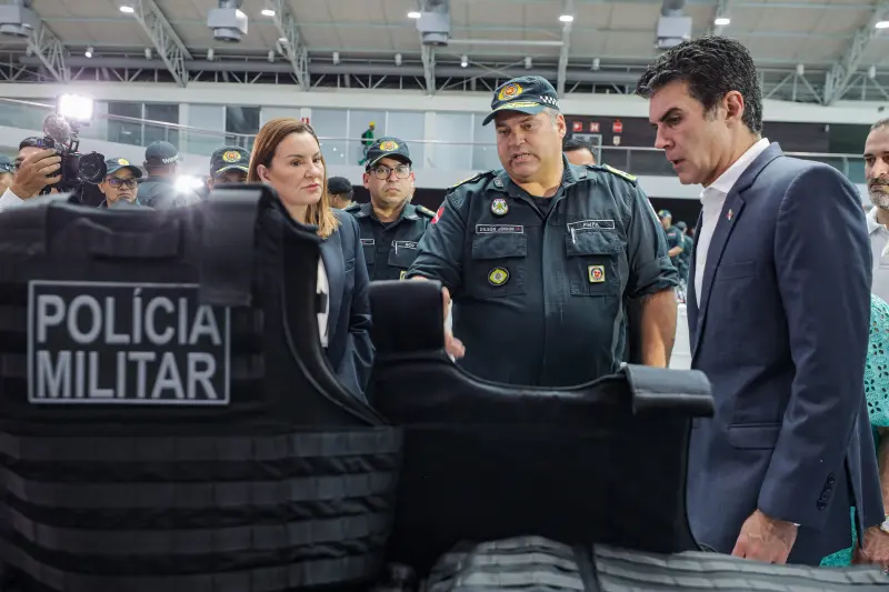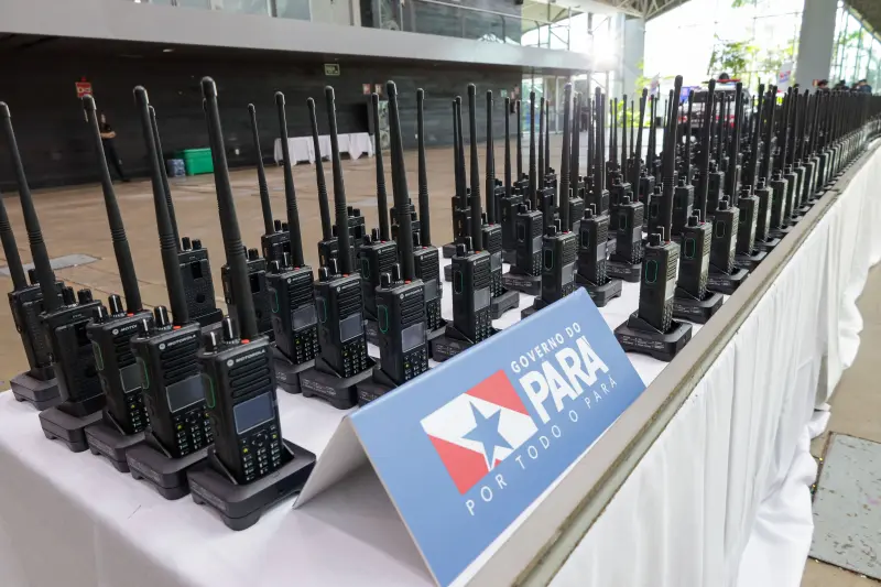 Entregas e assinatura - Durante o evento, realizado no Hangar - Convenções e Feiras da Amazônia, foram entregues 4.400 pistolas, modelo .40 Beretta APX, 4.000 coletes balísticos, 1.000 rádios transceptores digitais Motorola APX 900, totalizando quase 20 milhões de reais. A ação reforça o planejamento estratégico da Polícia Militar, que tem intensificado o reaparelhamento da tropa em todo o Estado.