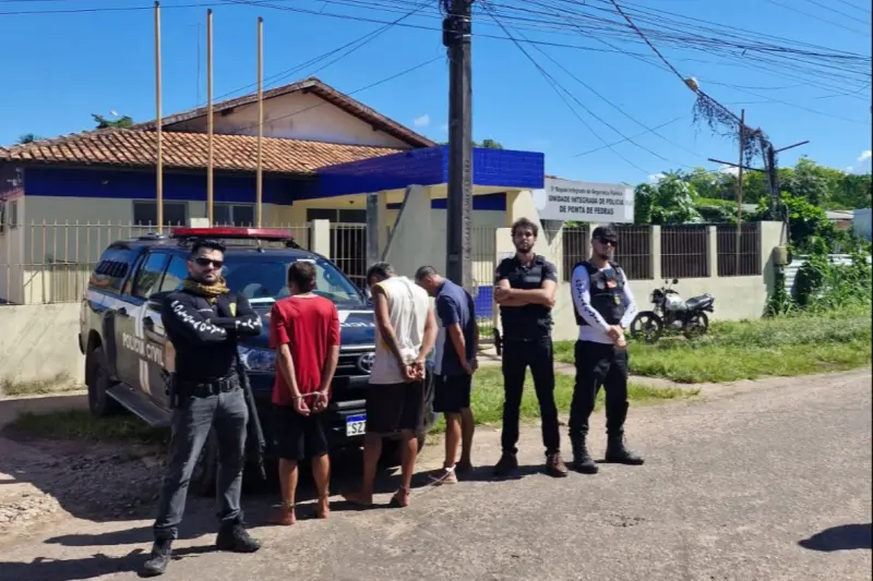 A Polícia Civil do Pará, com o apoio da Polícia Militar, prendeu três homens e apreendeu um adolescente por envolvimento em associação criminosa e tráfico de drogas no município de Ponta de Pedras, no Marajó. A ação, que teve início na terça-feira (8) e foi concluída nesta quinta-feira (10), foi deflagrada após investigações apontarem um plano para assassinar um policial militar da cidade.