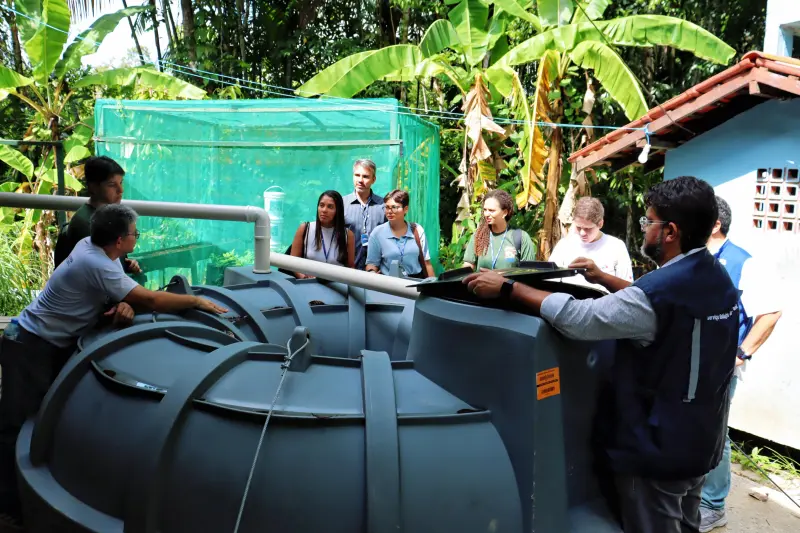 O Governo do Pará, por meio da Secretaria de Estado de Meio Ambiente, Clima e Sustentabilidade (Semas), realizou uma visita técnica à Ilha do Combu, em Belém, na sexta-feira (11), para acompanhar o avanço das obras do projeto “Água para Todos”. A iniciativa visa a garantir o acesso à água potável por meio da instalação de sistemas de captação e tratamento da água da chuva para comunidades tradicionais da região.