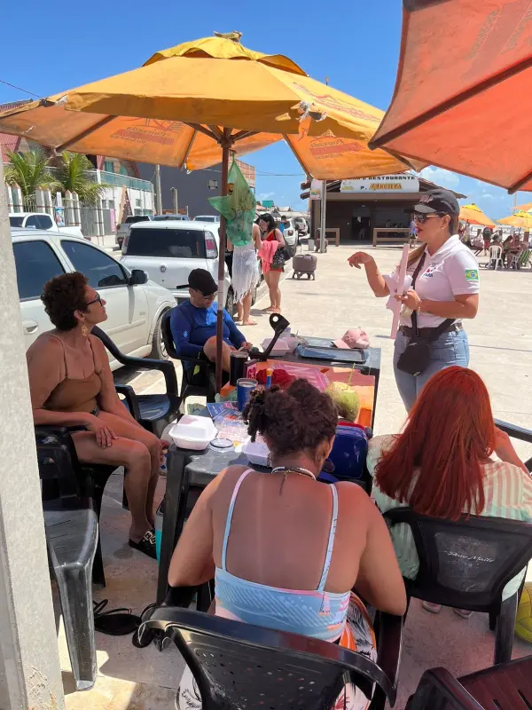 Na praia do Atalaia, em Salinópolis, a equipe da DPS integrada a agentes de segurança da Segup e equipes da Semu, levaram informação sobre o crime de importunação sexual e outros crimes contra as mulheres, para os veranistas, bem como aos funcionários de estabelecimentos comerciais. O trabalho também é feito na Orla da Praia de Ajuruteua, em Bragança, reforçando a conscientização junto aos profissionais que atuam nos quiosques e também aos veranistas que aproveitam a praia.