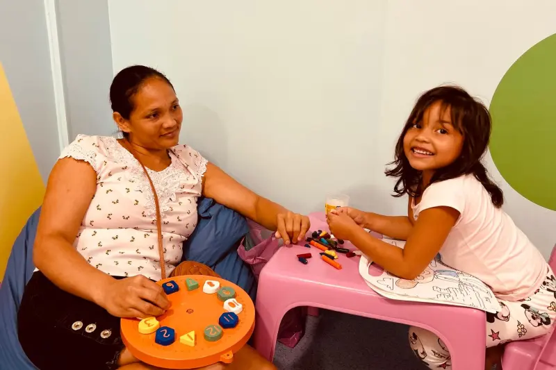 Rayane Diniz, também moradora do Marajó, buscou o Hospital para realizar cirurgia de remoção de pedra na vesícula. Depois de enfrentar dificuldades para concluir o procedimento em outra unidade, ela conseguiu encaminhamento por meio da Usina da Paz, no bairro da Terra Firme, e foi acolhida no HMPA. “Eu achei o atendimento muito bom. Uma moça subiu comigo e com minha filha, e me trouxe até a sala de espera. Chegando aqui, já achei maravilhosa a brinquedoteca, porque as mulheres que vêm do interior com filhos, assim como eu, têm esse espaço legal, lúdico, colorido, onde as crianças podem brincar e se divertir enquanto esperamos a consulta”, contou.