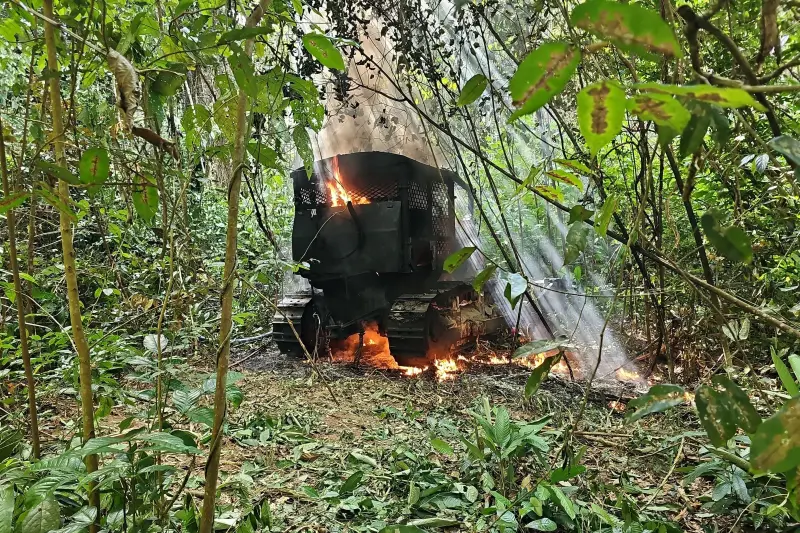 Trator foi destruído em mais uma atuação da Operação Curupira