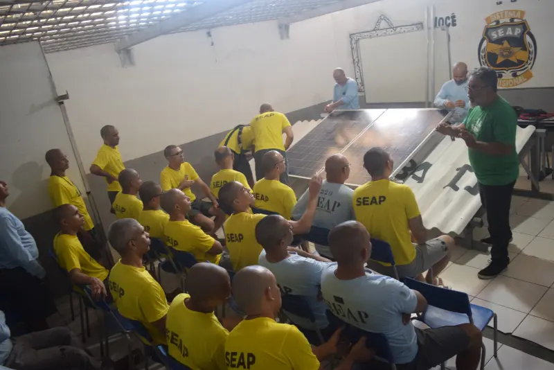 O uso de energia solar torna-se cada vez mais frequente devido à economia nos custos da eletricidade, menor emissão de gás carbônico e independência da rede elétrica, entre outros benefícios. Nesse contexto, a Secretaria de Estado de Administração Penitenciária (Seap), por meio da Gerência de Ensino Profissionalizante (GEP), em parceria com a missão prisional da Igreja Assembleia de Deus, concluiu o curso de Instalador de Sistema Solar Fotovoltaicos na Unidade de Custódia e Reinserção de Marituba II (UCR Marituba II), na Região Metropolitana de Belém.