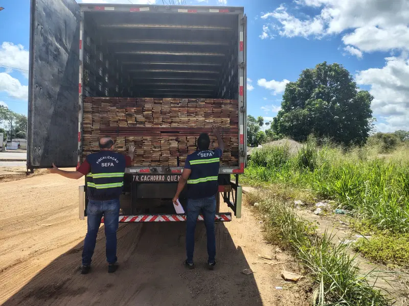 Portais de madeira e carga de alimentos são apreendidos por equipes da Sefa
