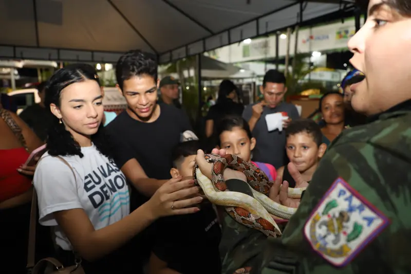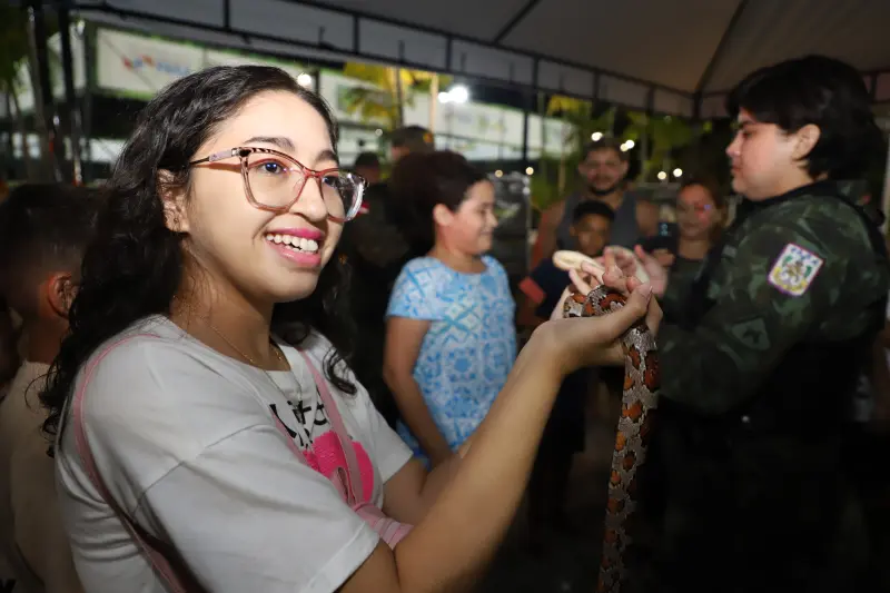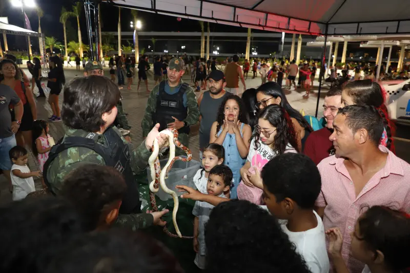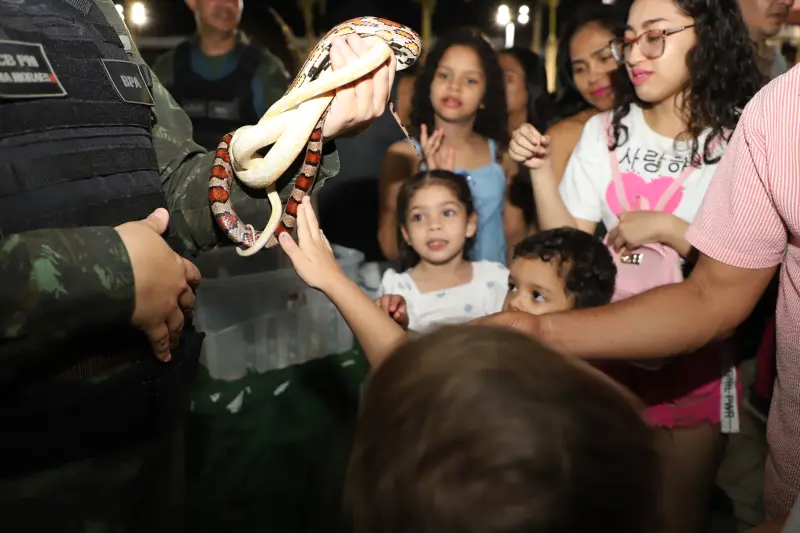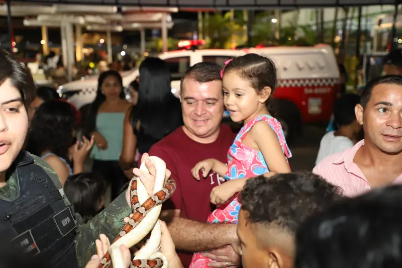 Larissa Rodrigues, que estava no final da tarde no Parque, levou o filho Renan para conhecer o estande do BPA, e destacou a importância dessa interação. “Acho incrível a iniciativa. Além das explicações sobre o meio ambiente e o trabalho do Batalhão Ambiental, as crianças ainda puderam tocar nos animais, o que foi um momento muito divertido e curioso”, disse Larissa.