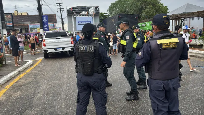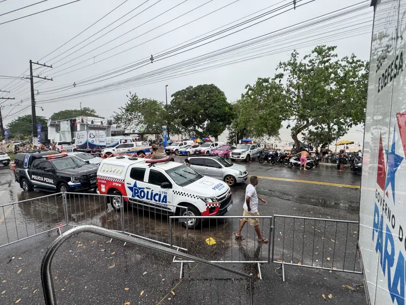 Trio elétrico - Agentes da Polícia Militar, juntamente com a Guarda Municipal, também acompanham a movimentação de banhistas em torno do trio elétrico que sai da orla do Chapéu Virado e segue pelas ruas do distrito. As equipes prestam apoio à programação oficial da Prefeitura de Belém para o verão 2025.