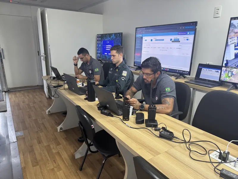 A intensa movimentação é acompanhada pelos policiais também no Centro Integrado de Comando e Controle Móvel, instalado pela Segup