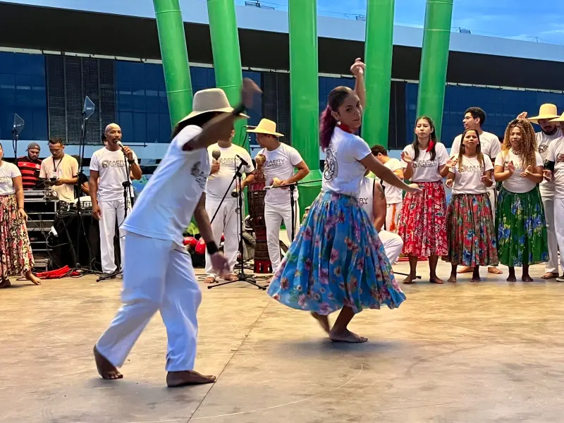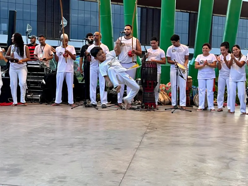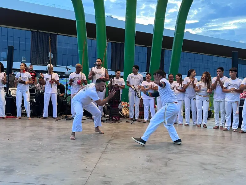 A Escola Maery Capoeira e o mestre Pantera também foram atrações, no domingo. Eles realizaram apresentações de capoeira, carimbó, maculelê e samba de roda reunindo crianças e adultos no anfiteatro do Parque.