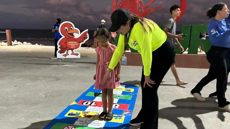 Além da distribuição de material informativo e orientações verbais, as ações incluem também atividades voltadas ao público infantil. Na orla de Ajuruteua, as crianças participam de brincadeiras educativas, amarelinha temática, jogos de tabuleiro, pintura facial e atividades de colorir com temas relacionados ao trânsito e à cidadania.