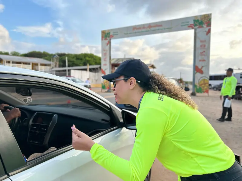 A equipe de Educação para o Trânsito do Detran  está posicionada em pontos estratégicos, realizando abordagens educativas com motoristas, motociclistas, ciclistas e pedestres. A atuação acontece em áreas de grande fluxo, como a entrada da cidade, vias de acesso às praias, feiras e, principalmente, na orla de Ajuruteua.