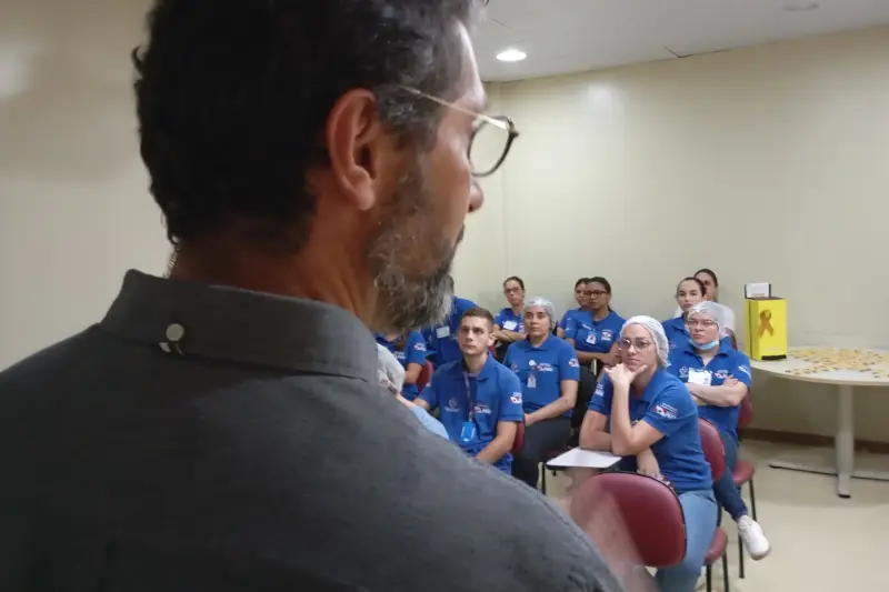 Durante a campanha, são ampliadas orientações sobre o cuidado com o paciente e, também, com o colaborador. Todos, ao serem admitidos, realizam exames de hepatites e outras virais. A unidade mantém sentinela, o que garante que os servidores tenham vacinas e testes atualizados, como explica o técnico em Enfermagem do Trabalho, Icaro Souza.