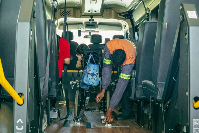 Cada veículo comporta até quatro usuários cadeirantes com seus respectivos acompanhantes e é equipado com adaptações e sistema de fixação de cadeiras de rodas, garantindo a segurança durante o trajeto. Os motoristas também recebem orientações contínuas sobre empatia, cordialidade e respeito.