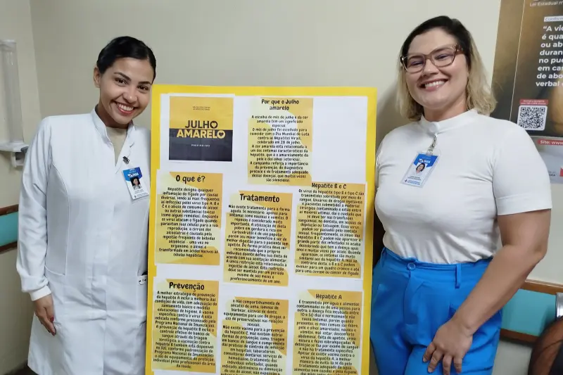 Em alusão ao Dia Mundial de Luta Contra as Hepatites Virais, celebrado nesta segunda-feira (28), e às ações do Julho Amarelo, campanha dedicada à conscientização e prevenção dessas doenças, o Hospital Regional do Sudeste do Pará – Dr. Geraldo Veloso (HRSP), em Marabá, realizou palestra educativa sobre prevenção, diagnóstico e tratamento das hepatites. A iniciativa foi voltada a pacientes e acompanhantes que aguardavam atendimento na unidade.