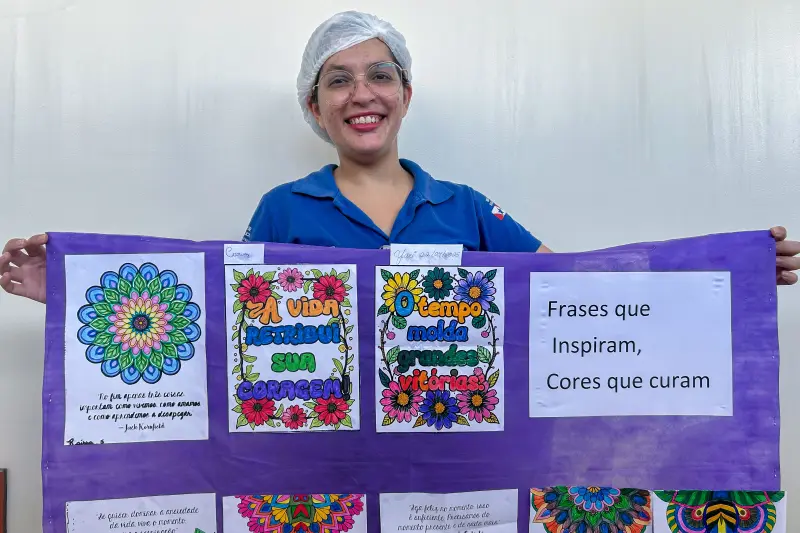 Quem também conhece e vivencia a realidade diária dessas mães é a assistente social Maria Suely Silva. “A finalidade da atividade é garantir efetivação dos direitos sociais e promover acolhimento, escuta qualificada e expressão emocional”, explica. Maria destaca ainda que o projeto de relaxamento e interação entre as mães “fortalece vínculos e contribui para o cuidado integral no ambiente hospitalar”.