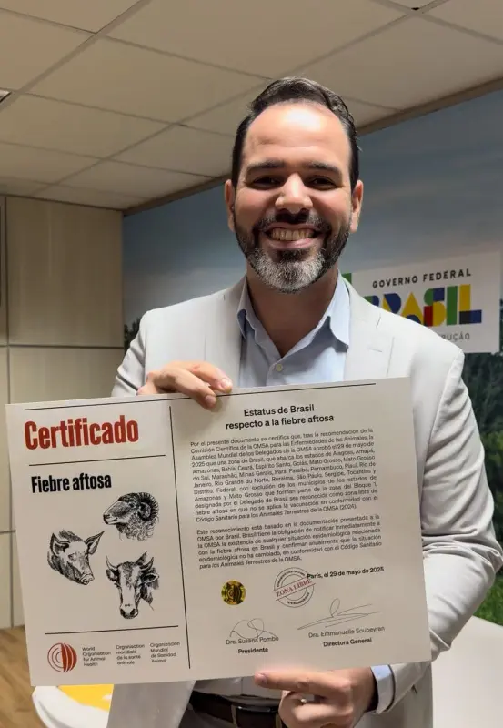 A comemoração é resultado da 92ª Sessão Geral da Organização Mundial de Saúde Animal, realizada em maio deste ano, na França, que declarou o reconhecimento internacional do Brasil como área livre da enfermidade sem vacinação. O encontro ocorreu, na terça-feira (29), no departamento de saúde do Ministério da Agricultura e Pecuária (Mapa), em Brasília (DF).