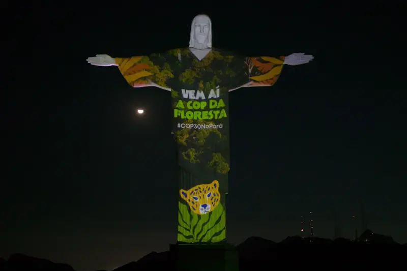 Cristo Redentor recebe projeção e marca 100 dias para a COP 30 na capital paraense, Belém