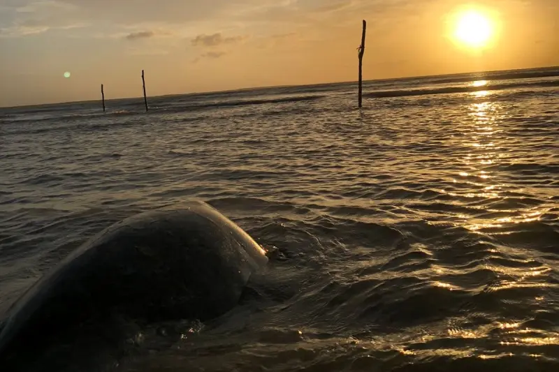 Um momento de rara beleza e profundo simbolismo marcou o final da tarde da sexta-feira (1º) na Praia da Princesa, na Área de Proteção Ambiental (APA) Algodoal-Maiandeua, em Maracanã, região nordeste paraense. Uma tartaruga-verde (Chelonia mydas) foi resgatada e devolvia ao mar, após ficar presa em um curral de pesca. A ação de resgate foi conduzida pela ARVUT Meio Ambiente e o Instituto Bicho D’água, com o apoio de técnicos do Instituto de Desenvolvimento Florestal e da Biodiversidade (Ideflor-Bio) e da comunidade local.