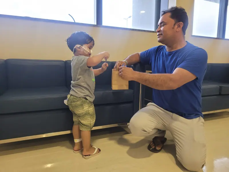 Jairo Sacramento Pinheiro, morador do município de Igarapé-Miri, na Região de integração Tocantins, pai do paciente Mikael Correia Pinheiro, definiu a comemoração como uma oportunidade de expressar sua alegria. “Estou acompanhando o meu filho, que está internado aqui há mais de um mês, e hoje tive a oportunidade de participar da atividade que o hospital fez especialmente pra nós, onde falei da minha grande satisfação em ser pai do Mikael. Gostei muito, pois foi uma forma que o hospital encontrou em não deixar a gente sem comemorar a data, mesmo estando longe de casa. Achei muito importante terem lembrado de nós”, destacou o acompanhante.
