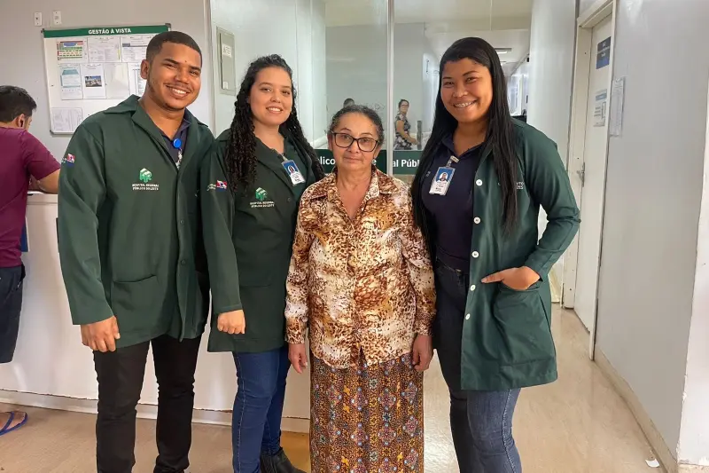 Aprovação - Raimunda de Freitas, 60 anos, foi uma das usuárias que se surpreenderam positivamente com a ação. Ao comparecer ao Hospital para realizar uma ultrassonografia, ela recebeu orientações valiosas dos profissionais sobre cuidados com o colesterol.