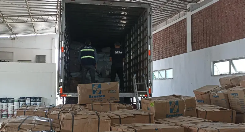 “O caminhão-baú, oriundo de Juazeiro do Norte (CE), com destino a Belém, Castanhal, Ananindeua (PA) e Macapá (AP) foi retido na barreira. Após o início de fiscalização e entrega dos documentos fiscais, os servidores perceberam que a carga era descrita como ‘chinelos e sandálias diversos, de forma genérica’, não contendo marca, tamanhos e modelos”, informou o coordenador da unidade fazendária, Gustavo Bozola.
