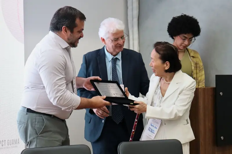 Durante o evento, a professora Mihoko Yamamoto Tsutsumi recebeu menção honrosa em reconhecimento à sua trajetória científica e ao compromisso com a promoção de uma saúde mais justa e acessível, especialmente em regiões que enfrentam desafios logísticos e estruturais, como a Amazônia.