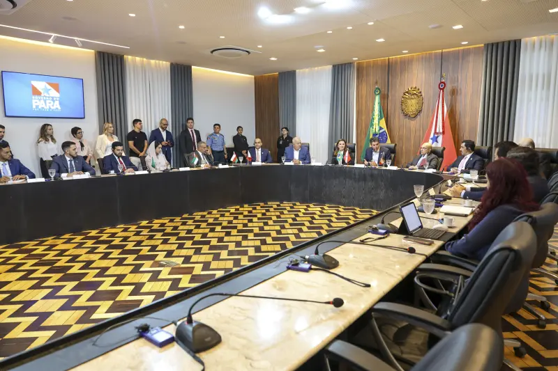 Uma comitiva de representantes diplomáticos de países do Golfo Pérsico foi recebida pelo governador do Pará, Helder Barbalho, e pela vice-governadora Hana Ghassan, nesta segunda-feira (11), no Palácio do Governo, em Belém. A reunião com os embaixadores dos Emirados Árabes Unidos, Arábia Saudita, Qatar, Kuwait, Omã e Bahrein teve o objetivo de estreitar relações bilaterais, explorar futuras oportunidades de parcerias e tratar sobre a preparação da capital paraense  para a 30ª Conferência das Nações Unidas sobre Mudança do Clima (COP30), que ocorrerá em novembro.