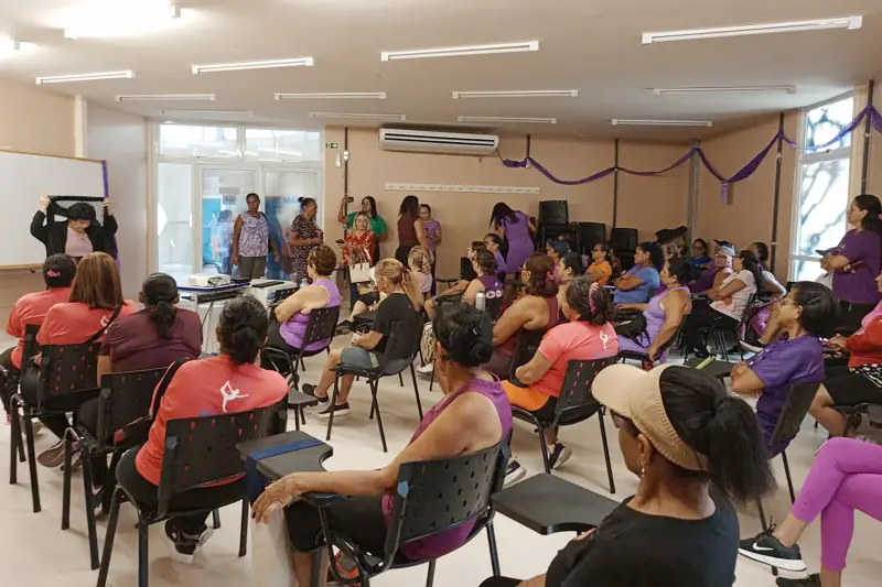 Para garantir a participação de todas de forma confortável, as atividades foram realizadas de forma simultânea, como explicou a coordenadora da ParáPaz na UsiPaz Guamá, Lilian Gusmão. “Enquanto um grupo se exercitava ao ar livre no aulão de pilates do projeto ‘Mover Bem-Estar’, o outro assistia às palestras no auditório com informações sobre os diferentes tipos de violência, onde e como procurar ajuda, orientações sobre empreendedorismo e empregabilidade”.