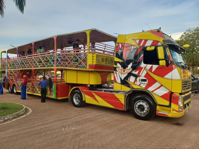 Personagens - A Carreta que levou as crianças é toda iluminada, com músicas infantis tocando durante todo o passeio. Os pacientes foram acompanhados durante o tempo todo por médicos, enfermeiros, técnicos e outros profissionais do hospital, para garantir a segurança durante o trajeto, que saiu do HRBA e foi até a orla da cidade.