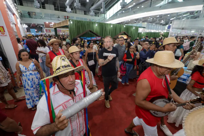 As homenagens ao artista popular Mestre Damasceno, um dos grandes nomes da cultura amazônica, marcaram a programação deste sábado (16) na 28ª Feira Pan-Amazônica do Livro e das Multivozes, no Hangar Centro de Convenções da Amazônia, em Belém. Às 17h30, o tradicional cortejo do Búfalo-Bumbá, uma de suas maiores criações, percorreu os corredores do espaço encantando crianças, jovens e adultos.