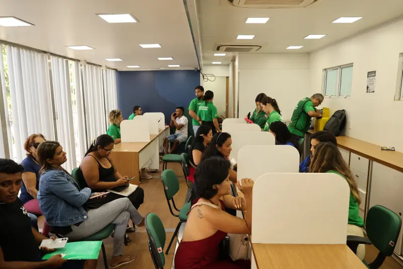 Atendimento especializado - Ao longo da manhã foram realizados mais de 30 serviços totalmente gratuitos, como emissão de documentos, atendimentos médico e odontológico, exames oftalmológicos e escolha de armação para a confecção de óculos de grau, testes rápidos para a detecção de doenças, vacinação e encaminhamentos para exames especializados.