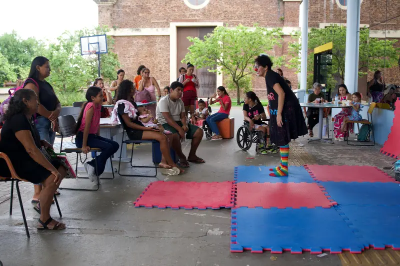 Espetáculo 'A Palhaça o que é que é?', com a personagem Nanna Chorona, levou arte e diversão a usuários, acompanhantes e profissionais da instituição