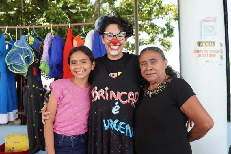 A atividade cultural ocorreu na orla do Centro, reunindo usuários, acompanhantes e profissionais da instituição de saúde do Governo do Pará. A apresentação convidou o público a mergulhar na linguagem da palhaçaria e do teatro, oferecendo uma experiência em que a personagem estimulou brincadeiras, emoções e reflexões.