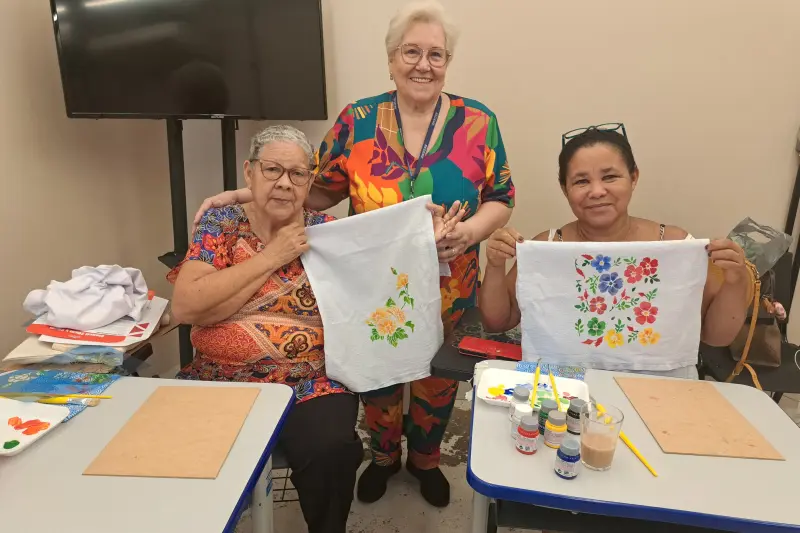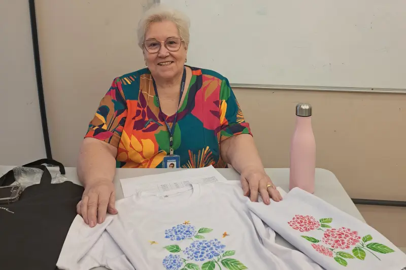 Nazarena Souza, 69 anos, participa do curso e enfatiza que vê na oficina uma oportunidade para estimular a criatividade, ocupar o tempo e se distrair. “A oficina é uma forma de manter a mente ativa e de fazer algo que prorciona o bem-estar”, comenta.