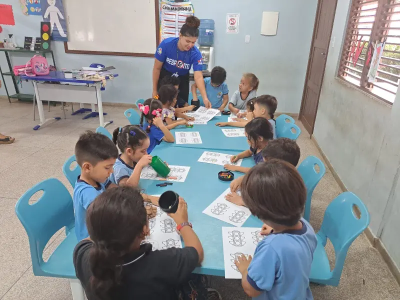 Na manhã desta quarta-feira, 20, seis turmas do jardim I e II, 1º e 2º ano da Escola Municipal de Ensino Infantil e Fundamental João Carlos Batista, do bairro da Cabanagem, em Belém, foram contempladas com a ação. Para as crianças de menor faixa etária, os agentes do Detran utilizam desenhos, figuras e pinturas educativas que ensinam normas e regras, como as cores do semáforo. Para crianças de maior idade, a atividade envolve figuras e recursos didáticos nas quais os alunos devem reconhecer os desenhos relacionados ao trânsito e a quais as ligações que elas têm entre si, a exemplo do semáforo e da faixa de pedestre, a motocicleta e o capacete e etc.