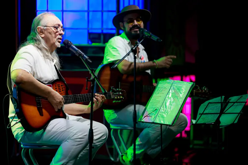 “O show de hoje é intimista, mas vamos mostrar como compomos as músicas, com voz e violão. É simples e tranquilo, trazendo canções conhecidas, mas também novidades, porque acho importante sempre apresentar coisas novas. O clima é de proximidade, humor e troca com o público”, destacou o artista.