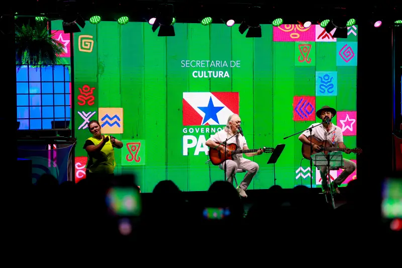 O quinto dia da 28ª Feira Pan-Amazônica do Livro e das Multivozes, realizado nesta quarta-feira (20), foi encerrado com o show dos artistas paraenses Nilson Chaves e Allex Ribeiro, que embalaram o público ao som de clássicos da música regional e canções inéditas. Realizada pelo Governo do Pará, por meio da Secretaria de Estado de Cultura (Secult), a programação cultural da Feira é gratuita e acontece diariamente no encerramento das atividades literárias.
