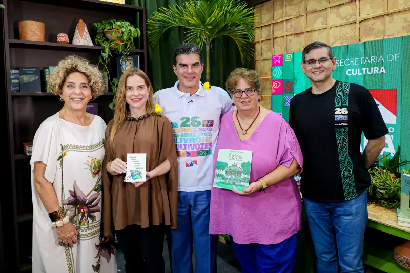 No estande da Secretaria de Estado de Cultura (Secult), o governador recebeu os três lançamentos desta 28ª edição da Feira Pan-Amazônica do Livro: Poesia Reunida, de Wanda Monteiro; Mestre Damasceno e as Cantorias do Marajó, sobre o homenageado Mestre Damasceno; e o relançamento de O Homem Rio: A Saga de Miguel dos Santos Prazeres, de Benedicto Monteiro.