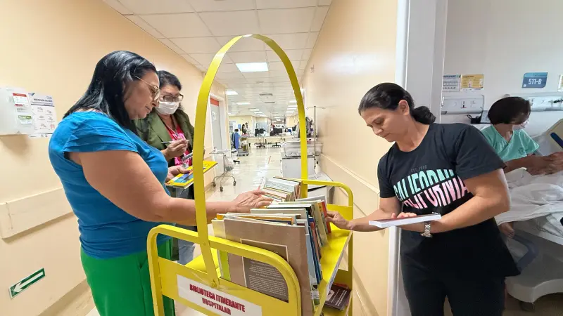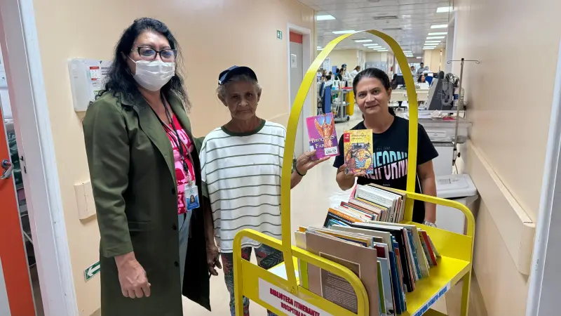 No Hospital de Clínicas Gaspar Vianna (HC), em Belém, a rotina de pacientes e acompanhantes ganhou um novo estímulo com a passagem da Biblioteca Itinerante Hospitalar pelos corredores da unidade. A iniciativa leva livros e revistas até quem está em tratamento ou acompanhando familiares, oferecendo momentos de leitura, distração e acolhimento em meio ao período de internação.