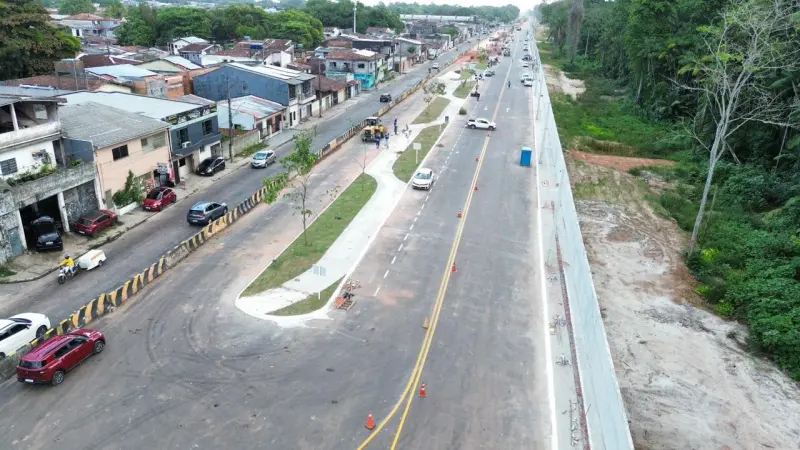 A via contará com duas pistas de mão dupla, cada uma composta por três faixas de rolamento, além de ciclofaixa e passeio acessível. O projeto inclui ainda sinalização horizontal e vertical, paradas de ônibus recuadas com totens informativos e nova iluminação em LED, oferecendo mais conforto e segurança à população.