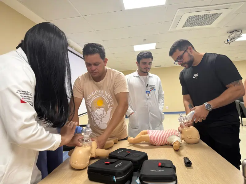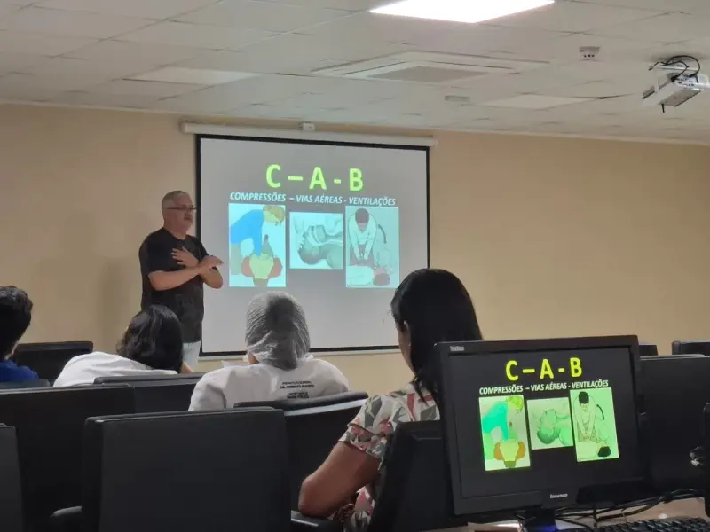 Cerca de 100 profissionais do Pronto-Socorro Dr.Roberto Macedo (PSRM) participaram, na sexta-feira e neste sábado (23), do ciclo de capacitação em Suporte Básico e Avançado de Vida - Adulto e Pediátrico. A iniciativa, conduzida pelo Núcleo de Educação Permanente (NEP), tem o objetivo de contribuir para melhoria contínua do atendimento de urgência e emergência ofertado na unidade de saúde à população de Belém e região metropolitana.